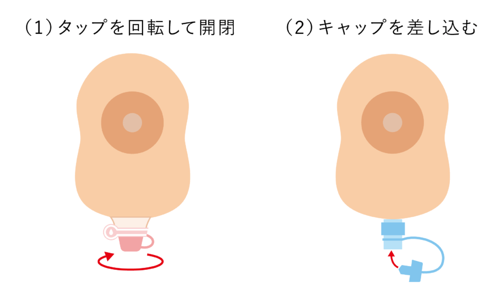 (3)キャップ式:排出口がキャップ状になっており、大型のバッグに接続が可能です。水様便の方に適しています。