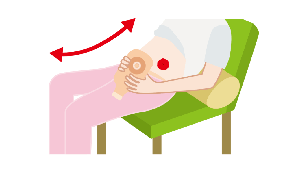 介助者が貼付する場合は、前述の体勢で、両肘を持ち上げた状態て貼付するとよいでしょう。貼る際には、ストーマ近接部をしっかり密着させ、その後外に向かって面板を貼り付けます。面板は体温になじむと密着がよくなるので、貼付したあとは、1分ほど、手のひらで面板全体をまんべんなく押さえながら密着させます。