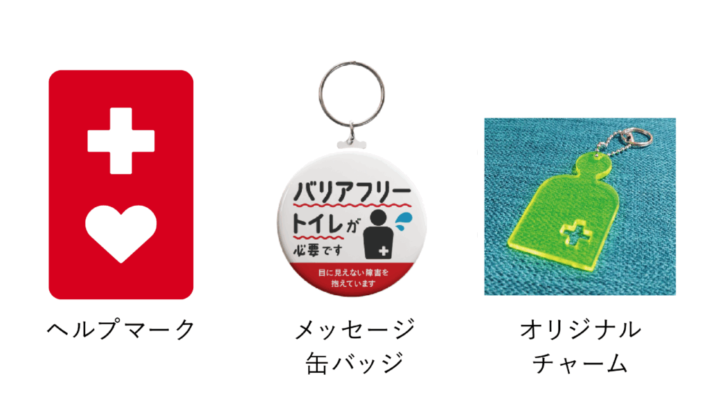 排泄物の処理や外出先での装具交換でバリアフリートイレを使うとき、見た目ではオストメイトであることが周囲の方にわからないため、居心地が悪い思いをされた方もいらっしゃると思います。そのような場合、マークがついたグッズなどで周囲に認知していただき、少しでも快適にトイレを使用するためのツールをご紹介します。